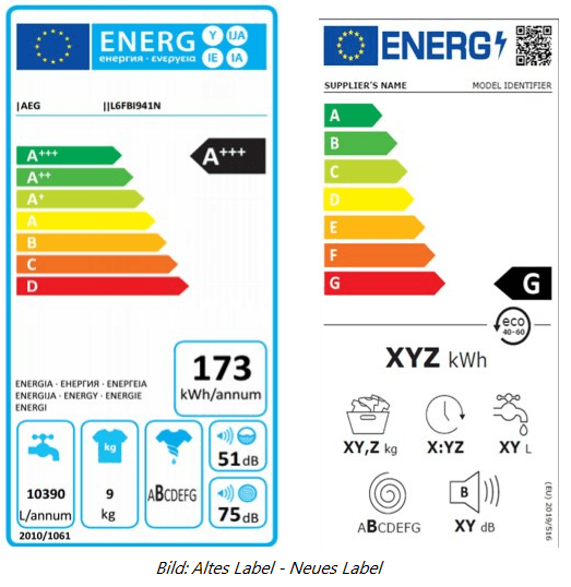 Ab 1.März 2021 tritt eine neue Regelung zum Energielabel in Kraft. Beispiele für die Änderung: