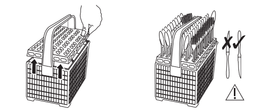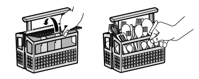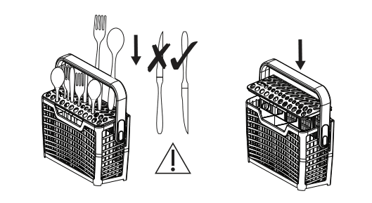 - Geben Sie Gabeln und Löffel so in den Besteckkorb, dass der Griff unten ist.