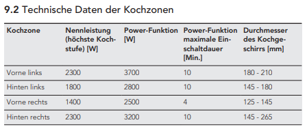 - Welche Topfgröße ist für die Kochzone des Glaskeramikkochfelds passend?
