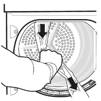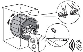 - Während eines Trockenprogramms:- Bestandteile der Kleidungsstücke, wie Gürtelschnallen, Reißverschlüsse, Knöpfe schlagen an die Trommel. Drehen Sie die Kleidung vor dem Waschen auf links und schließen soweit möglich alle Reißverschlüsse und Knöpfe.