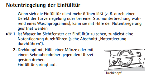 Bild: Beispiel für Notöffnung der Waschmaschine