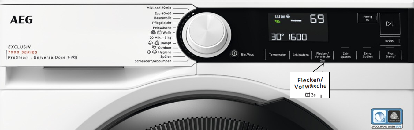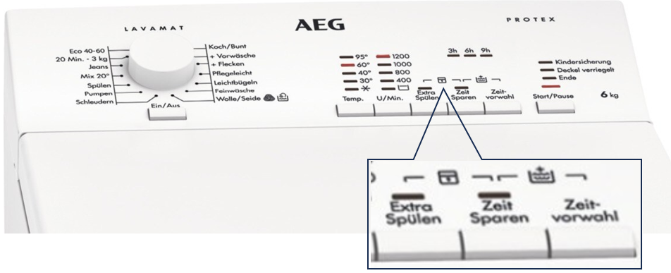 - nachdem die Start/Pause-Taste berührt wurde: Alle Tasten und der Programmwahlschalter (mit Ausnahme der Start/Pause-Taste) können nicht verstellt werden.