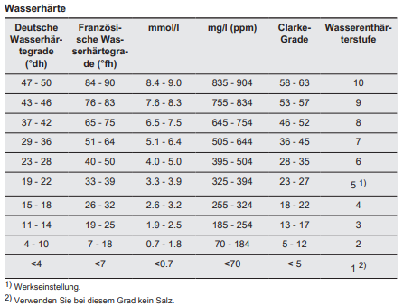 - Mit den Tasten A und C können Sie nun die Wasserhärte verstellen.