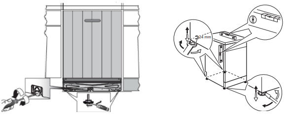 Ein Einbau-Geschirrspüler kann über die Füße in der Höhe verstellt werden.