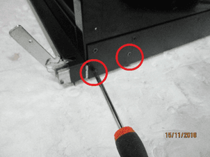 3) Lösen Sie die 2 Schrauben, mit denen das Türscharnier befestigt ist