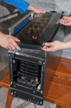 Entfernen Sie die Tür vorsichtig und ersetzen Sie sie durch eine neue Glastür