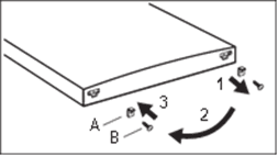 3. Entfernen Sie mit einem Schraubendreher mit dünner Klinge die Schraubenlochabdeckung (A) und die obere Scharnierabdeckung (B).