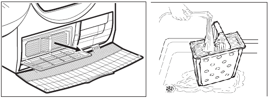 2. Reinigen Sie nach jedem Trockengang die Siebe wie in der Bedienungsanleitung beschrieben.