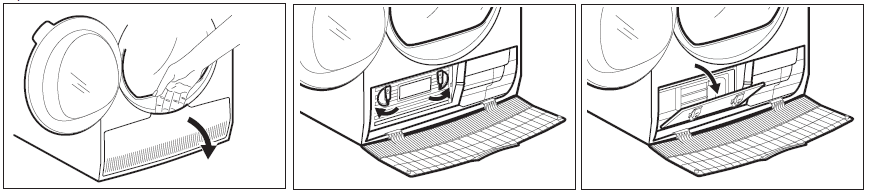- Entnehmen Sie das Sieb in der Tür, bevor Sie die Klappe zum Wärmetauscher öffnen.
