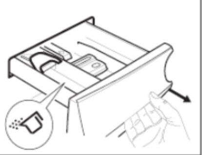 - Falls beim Befüllen Pulver unter die Schublade gelangt, können Sie die Schublade entnehmen und den Schacht reinigen. Weitere Hinweise finden Sie in der Bedienungsanleitung.