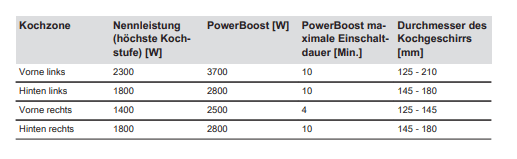 - wird bei Induktionskochfeldern weniger Leistung an den Topf abgegeben.