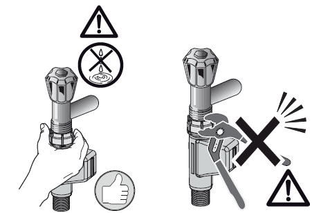 - Da eine weiche Dichtung verwendet wird, reicht es aus, die Verschraubung von Hand anzuziehen.